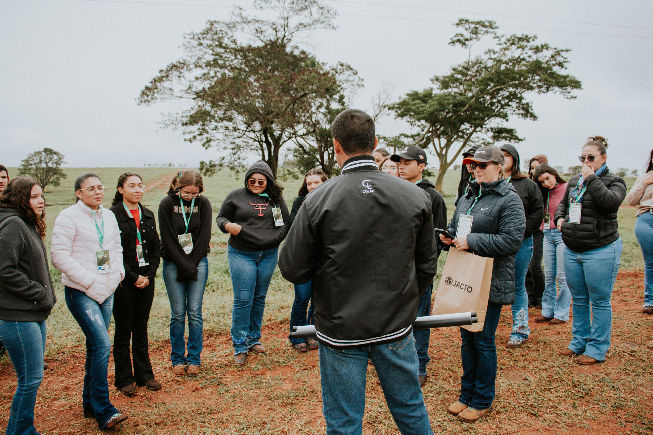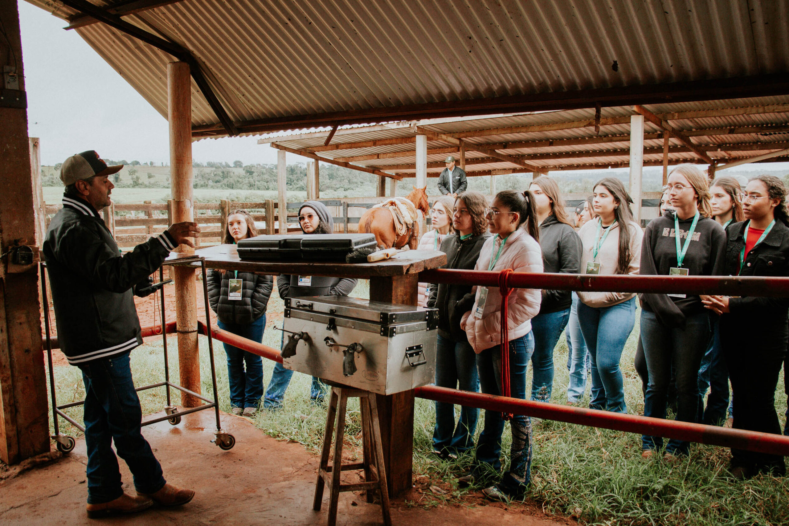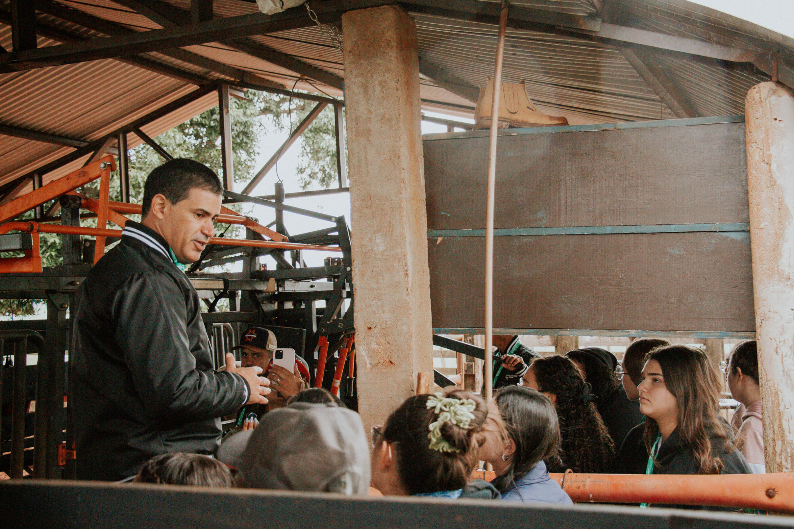 Desde cedo, a fazenda foi preparada para acolher com excelência. Os próprios funcionários da COLAB lideraram as atividades do dia, conduzindo os alunos por quatro estações temáticas: Administração e Planejamento no Agro, Nutrição e Agricultura de Pasto, Tecnologia no Agro e Sanidade, Manejo e Bem-estar Animal e Humano. Cada estação foi pensada para inspirar a nova geração e mostrar, na prática, como o trabalho no campo é repleto de conhecimento, técnica e propósito.